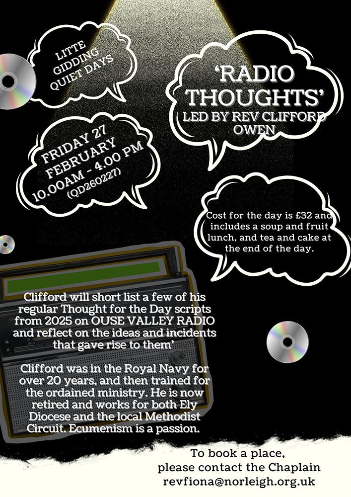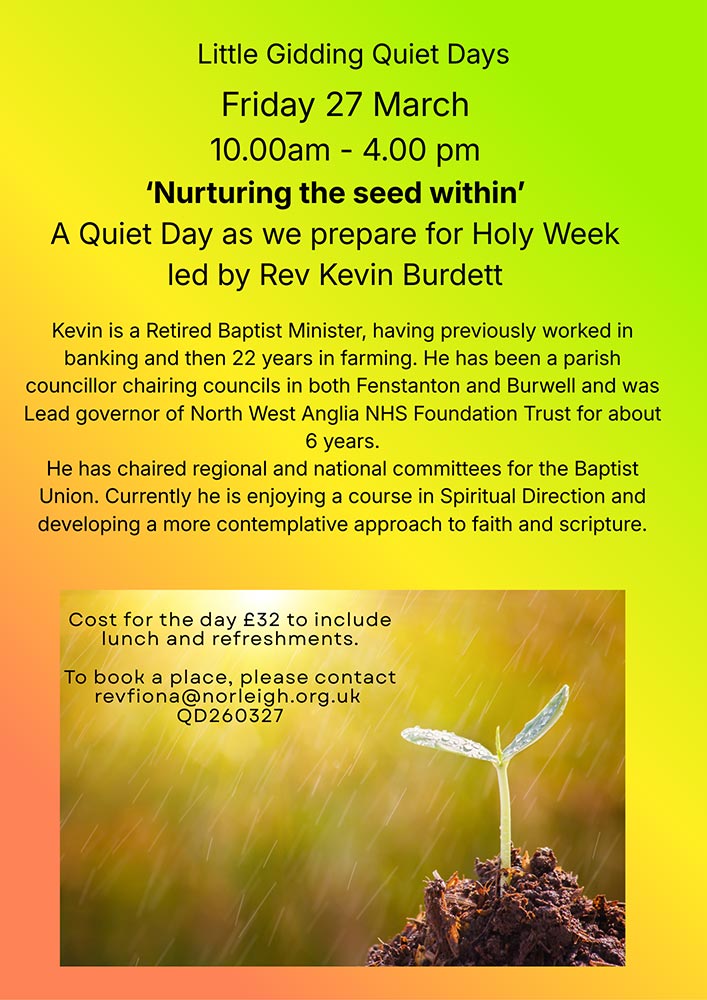 In 2026, we continue to offer a programme of Quiet Days at Ferrar House (using St John’s Church as well). These will be led by local ministers – not all ordained, and not all Anglican!